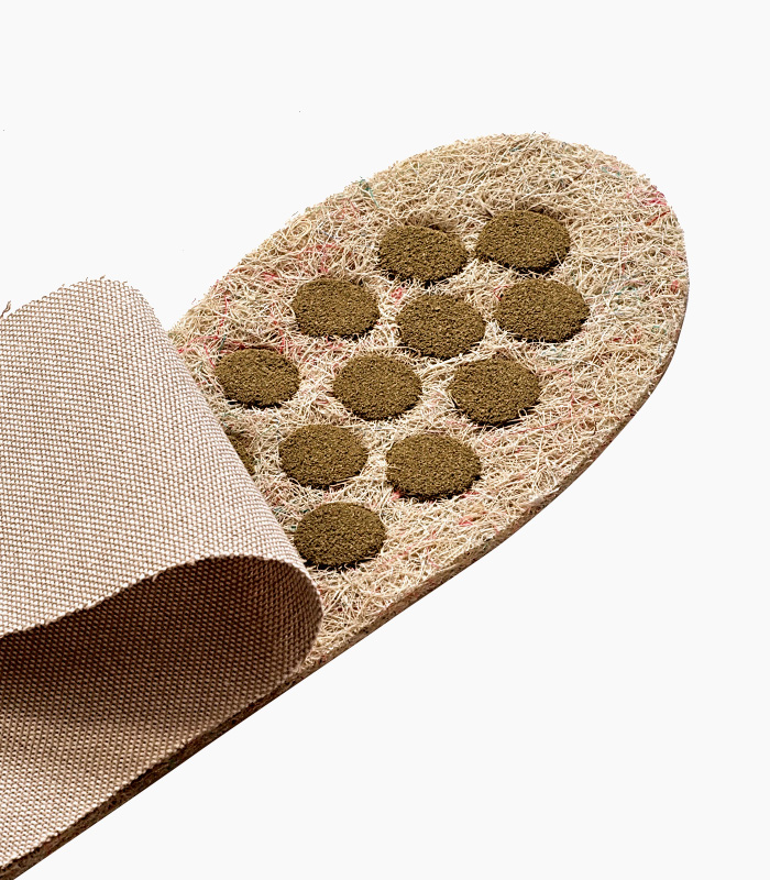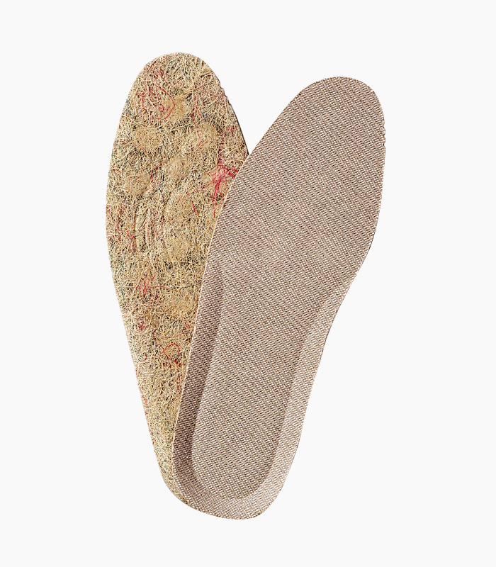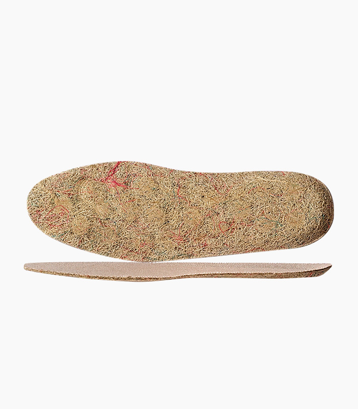 2ª capa: El sudor es absorbido por la fibra de sisal, el arroz y las plantas aromáticas con propiedades antifúngicas y antibacterianas, cuya función es eliminar el mal olor, prevenir la aparición de hongos y bacterias y reducir el exceso de sudor en pies y calzado, aportando a su vez un ligero aroma a plantas, incluso durante su uso.