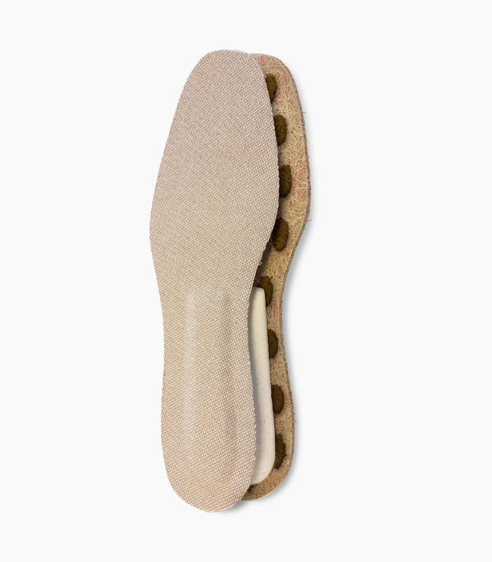 2ª capa: El sudor es absorbido por la fibra de sisal, el arroz y las plantas aromáticas con propiedades antifúngicas y antibacterianas, cuya función es eliminar el mal olor, prevenir la aparición de hongos y bacterias y reducir el exceso de sudor en pies y calzado, aportando a su vez un ligero aroma a plantas, incluso durante su uso.